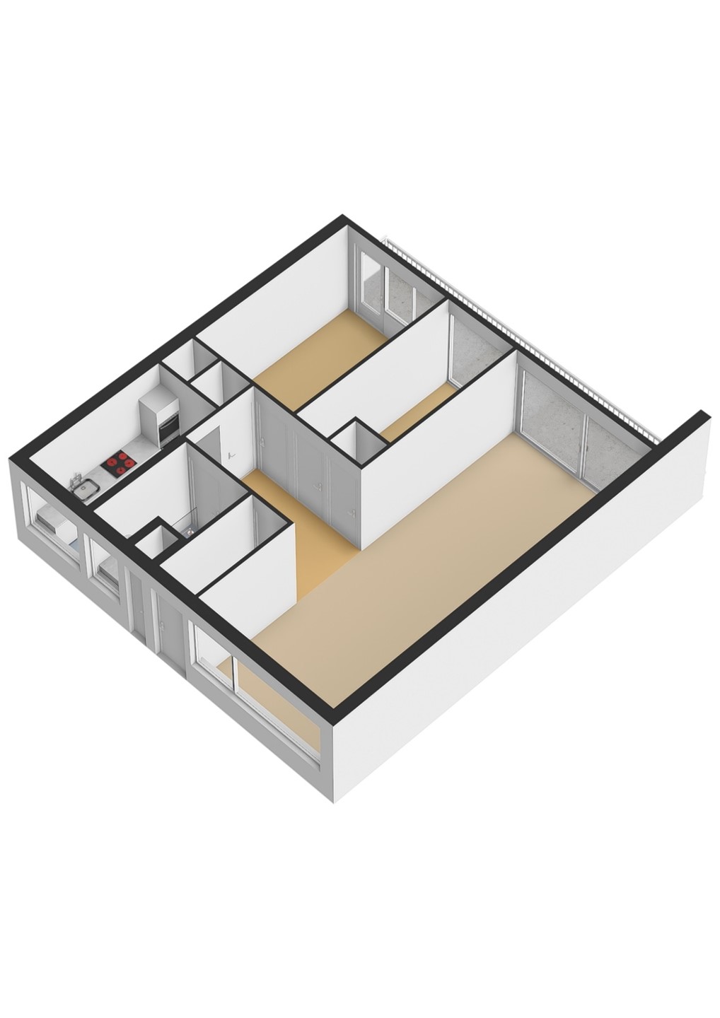 The bright through-lounge faces west and features a 4 metre-wide sliding door opening onto the balcony. With windows on both the east and west sides, the space is filled with natural light. The combination of wood and concrete gives the apartment a unique and serene appearance. A 2-metre-wide mirrored wall creates a striking feature, offering stunning views of the Sloterplas from the moment you enter. The ceiling height of 2.62 m adds to the sense of space, while the same well-maintained laminate flooring runs throughout the entire apartment.