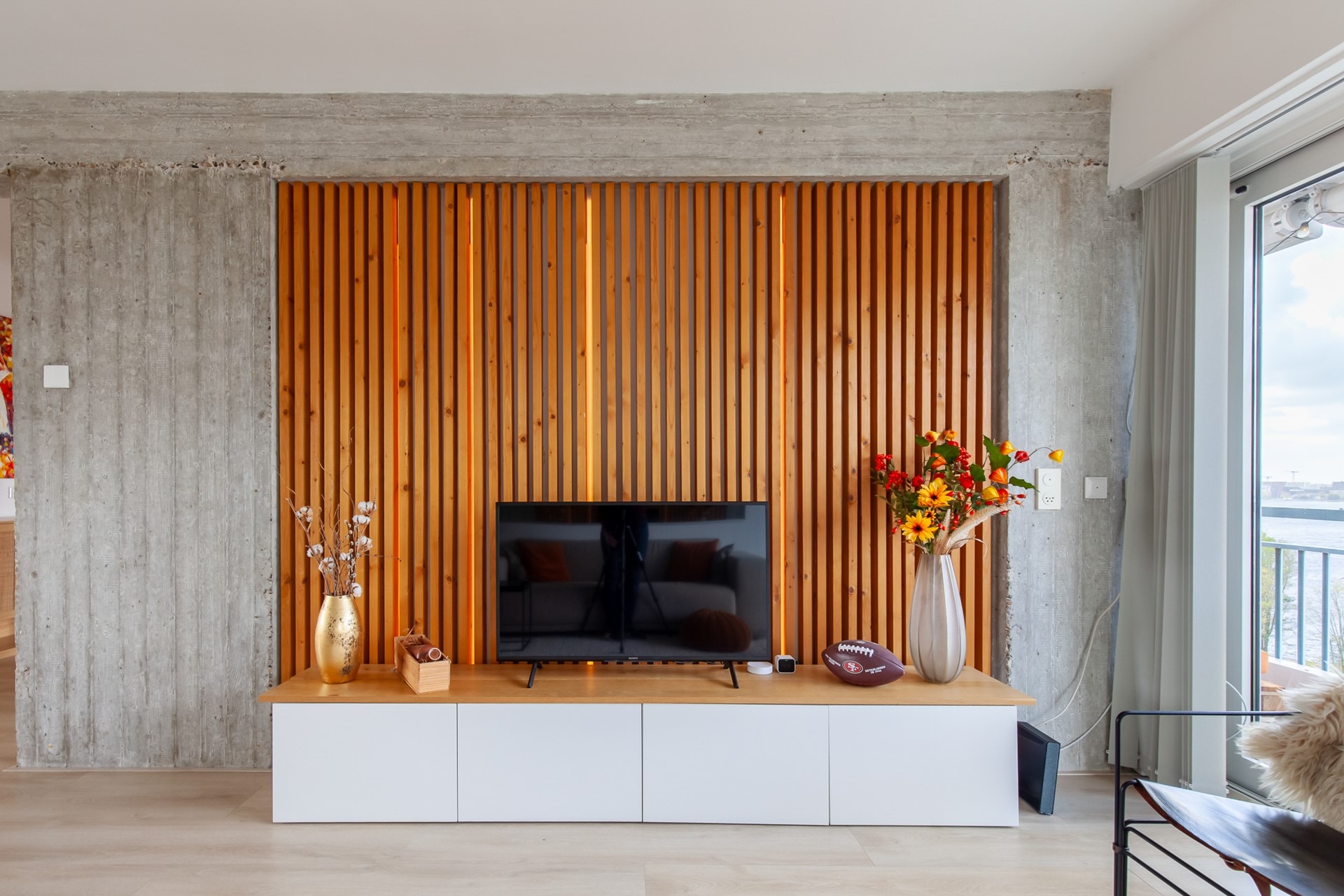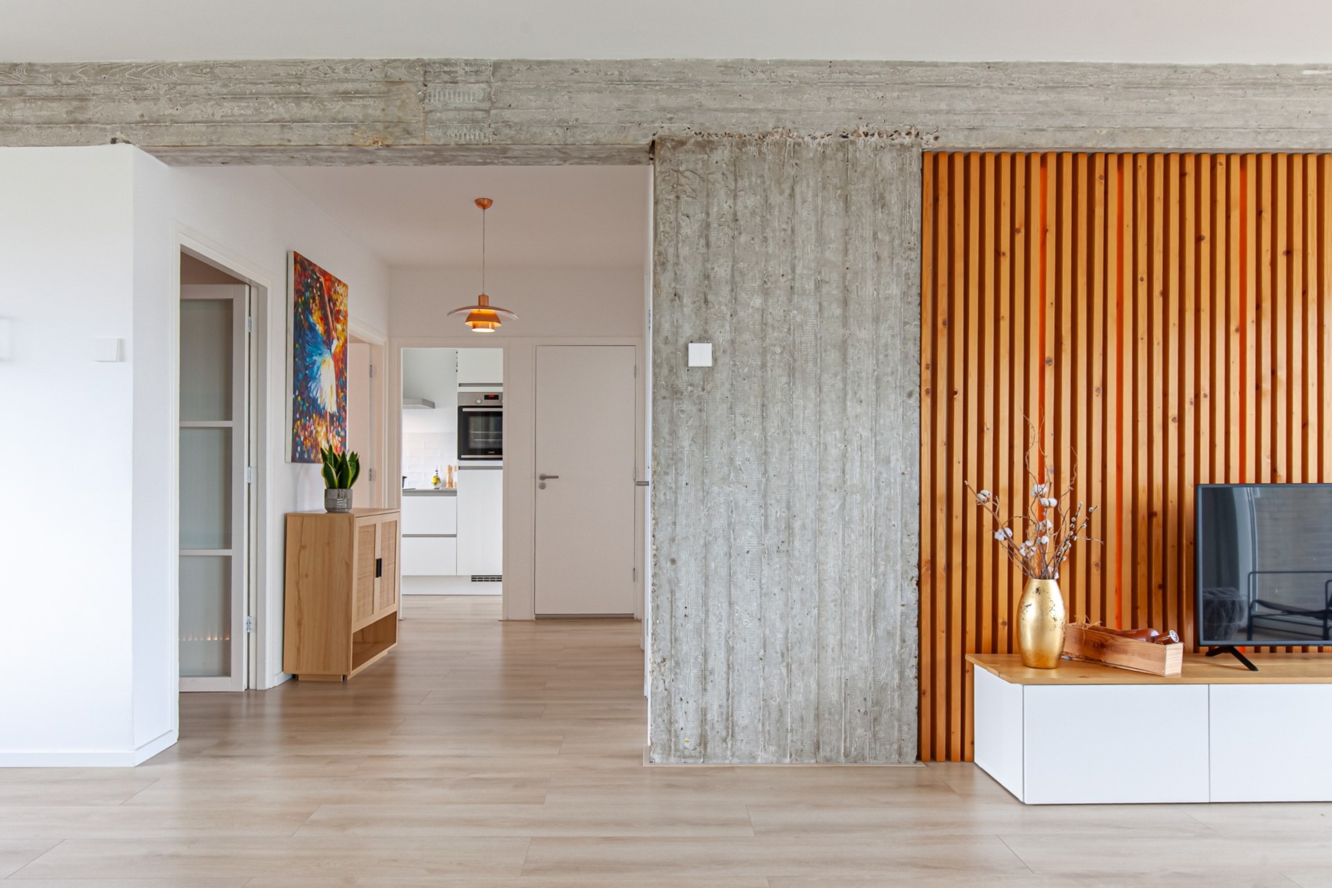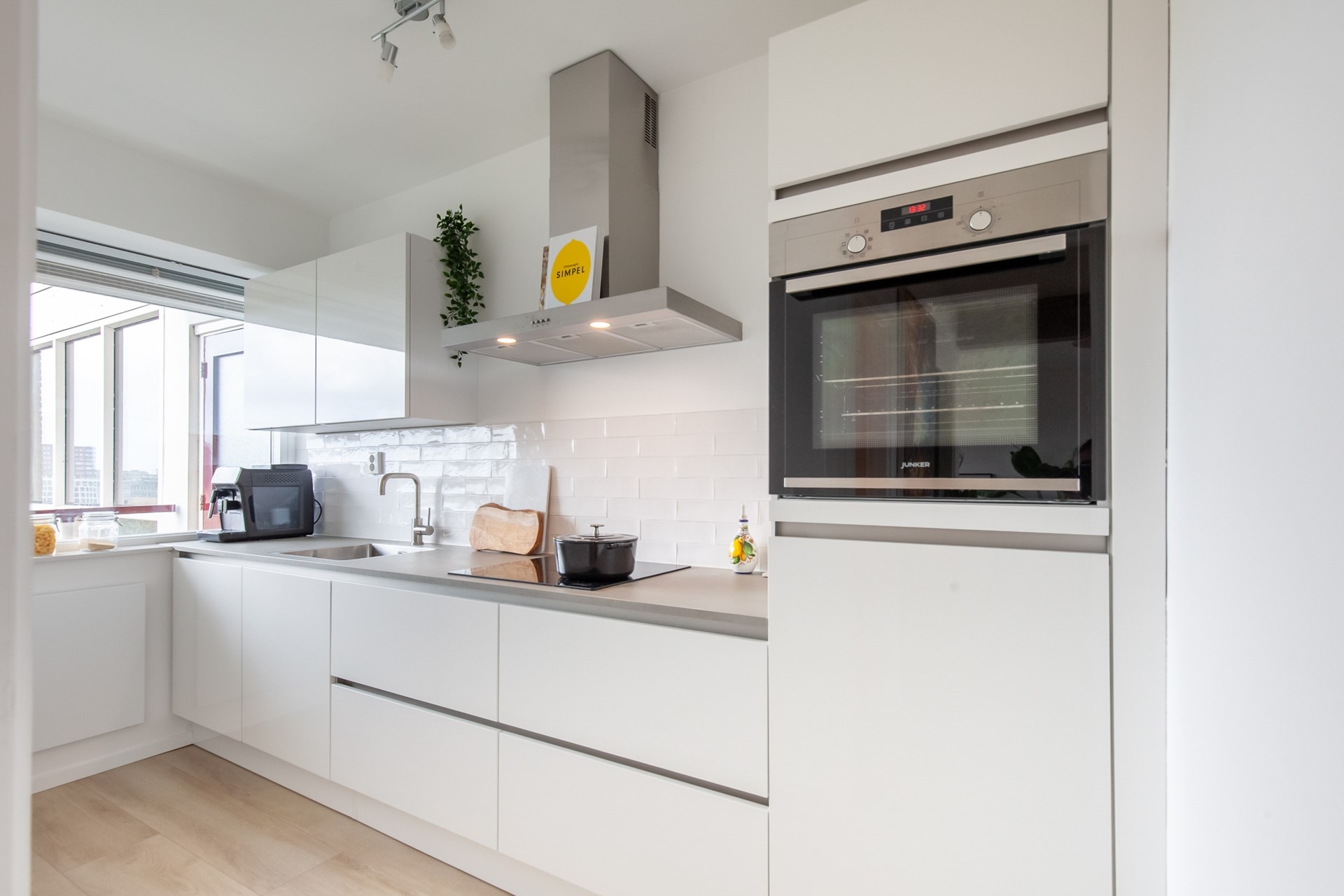 Bright and beautifully renovated modern apartment (76 m²) with lift and sunny west-facing balcony overlooking the Sloterplas in Amsterdam Nieuw-West. The current owner has completely refurbished the property, including a new kitchen, bathroom, and flooring throughout. The use of natural materials such as wooden slats and the exposed concrete of the original structure gives the apartment a calm and distinctive character. Large windows and a wide sliding door allow maximum natural light to flow through from both sides of the apartment. The ground lease has been bought off in perpetuity, and there is a private storage room in the basement. Experience the comfort of a bright two-bedroom apartment with a sunny balcony and open views of greenery and Sloterplas, all just a 15-minute cycle from the vibrant heart of Amsterdam. We look forward to welcoming you.