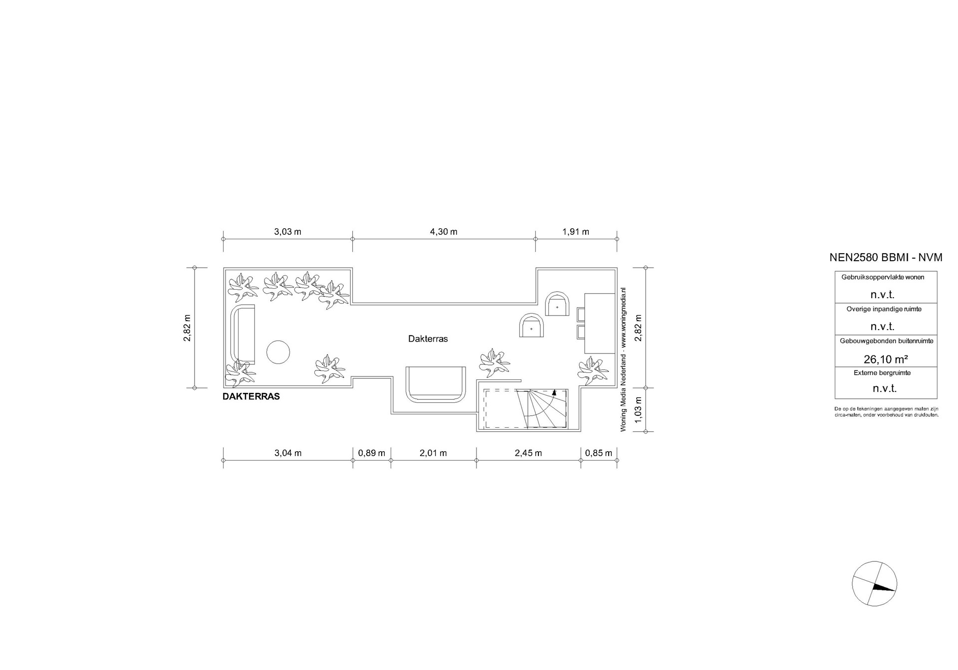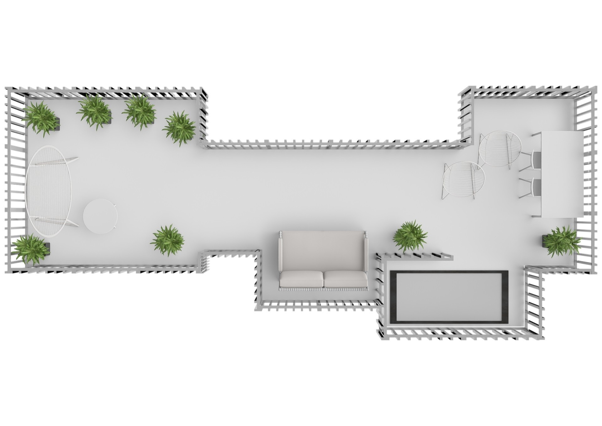 From the hallway a staircase leads to the roof terrace. Measuring 26 m², the terrace is spacious and private, equipped with both a water supply and electricity.