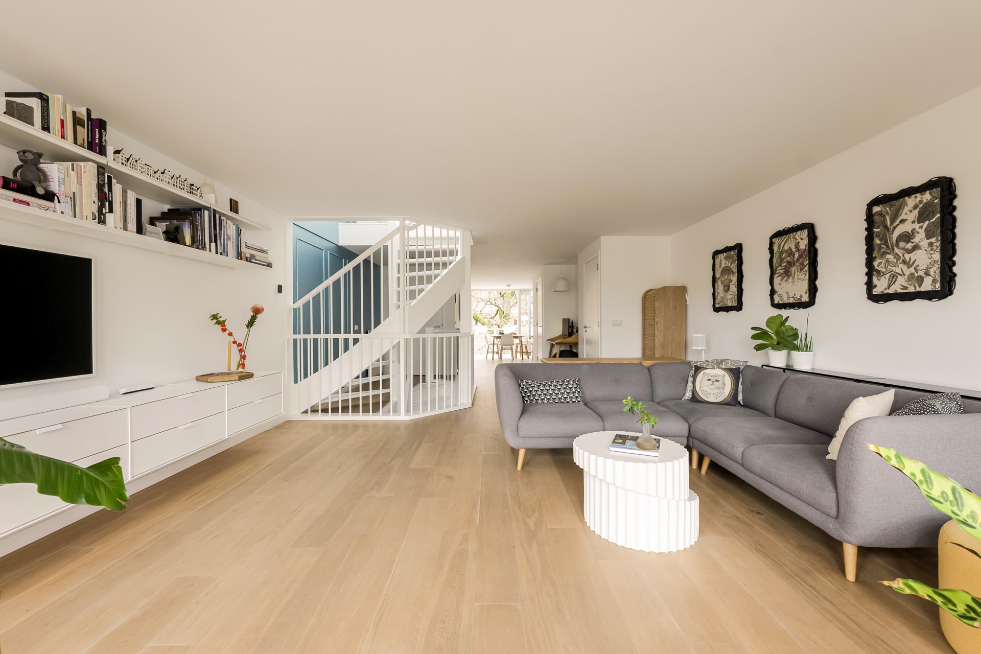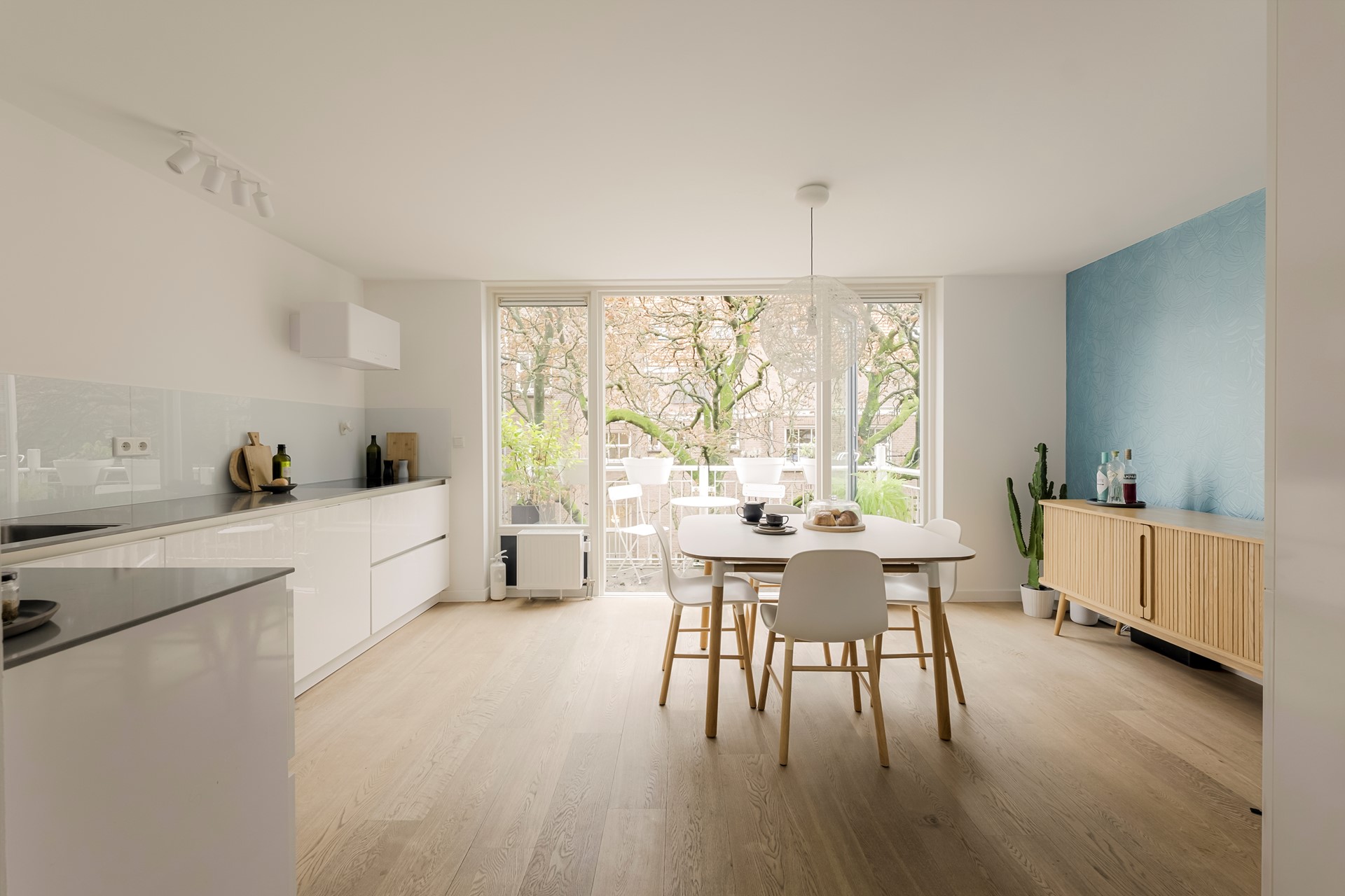 At the front of the apartment, the living room offers a view of Carré and the canals. The French balcony with floor-to-ceiling windows brings in plenty of natural light. The entire apartment features an oak floor with underfloor heating.