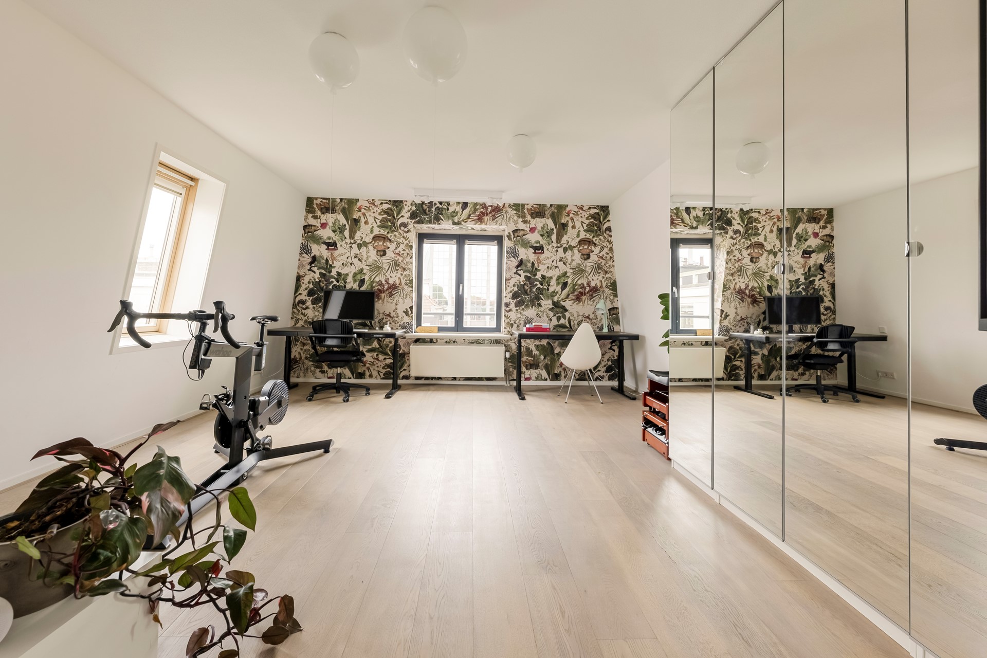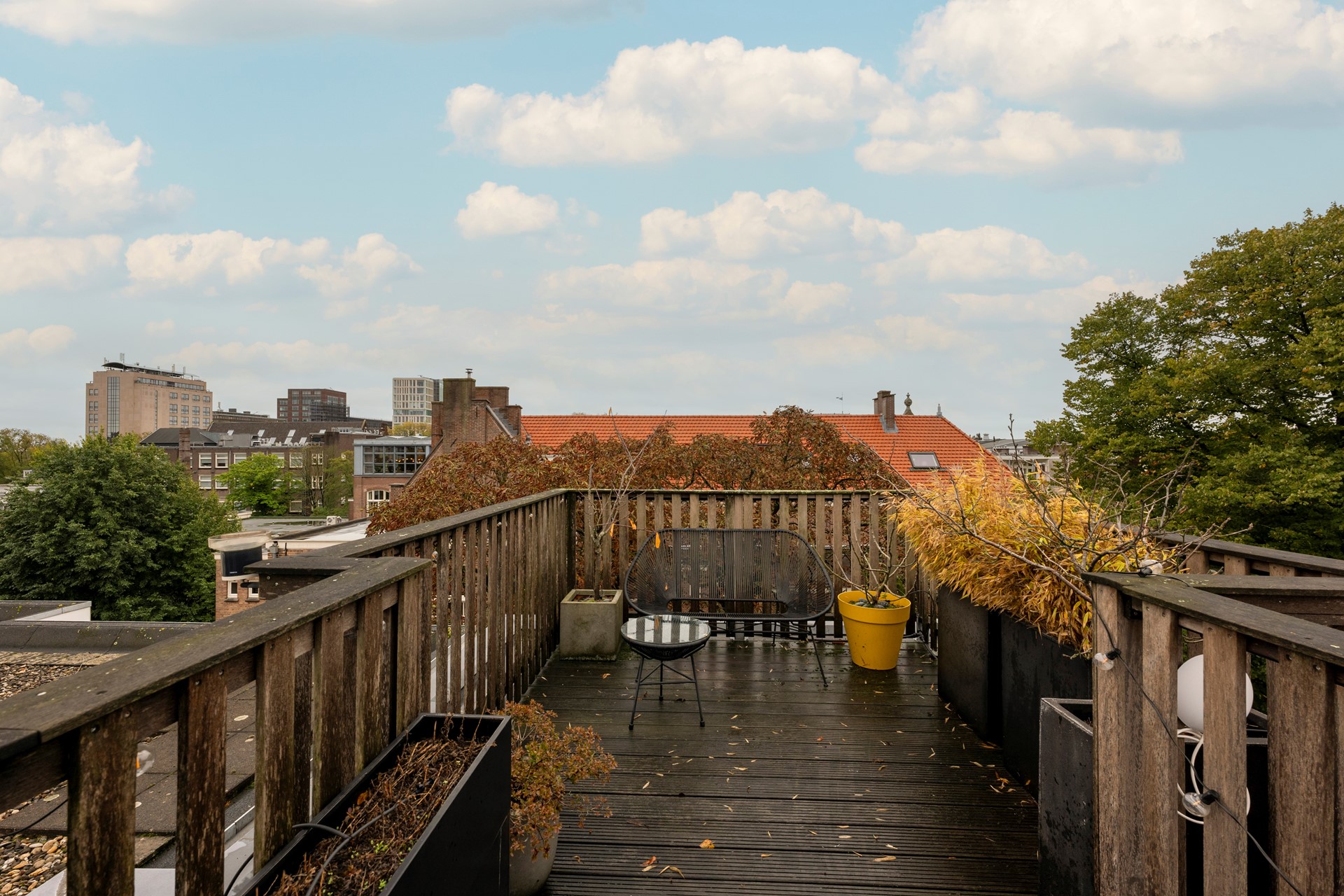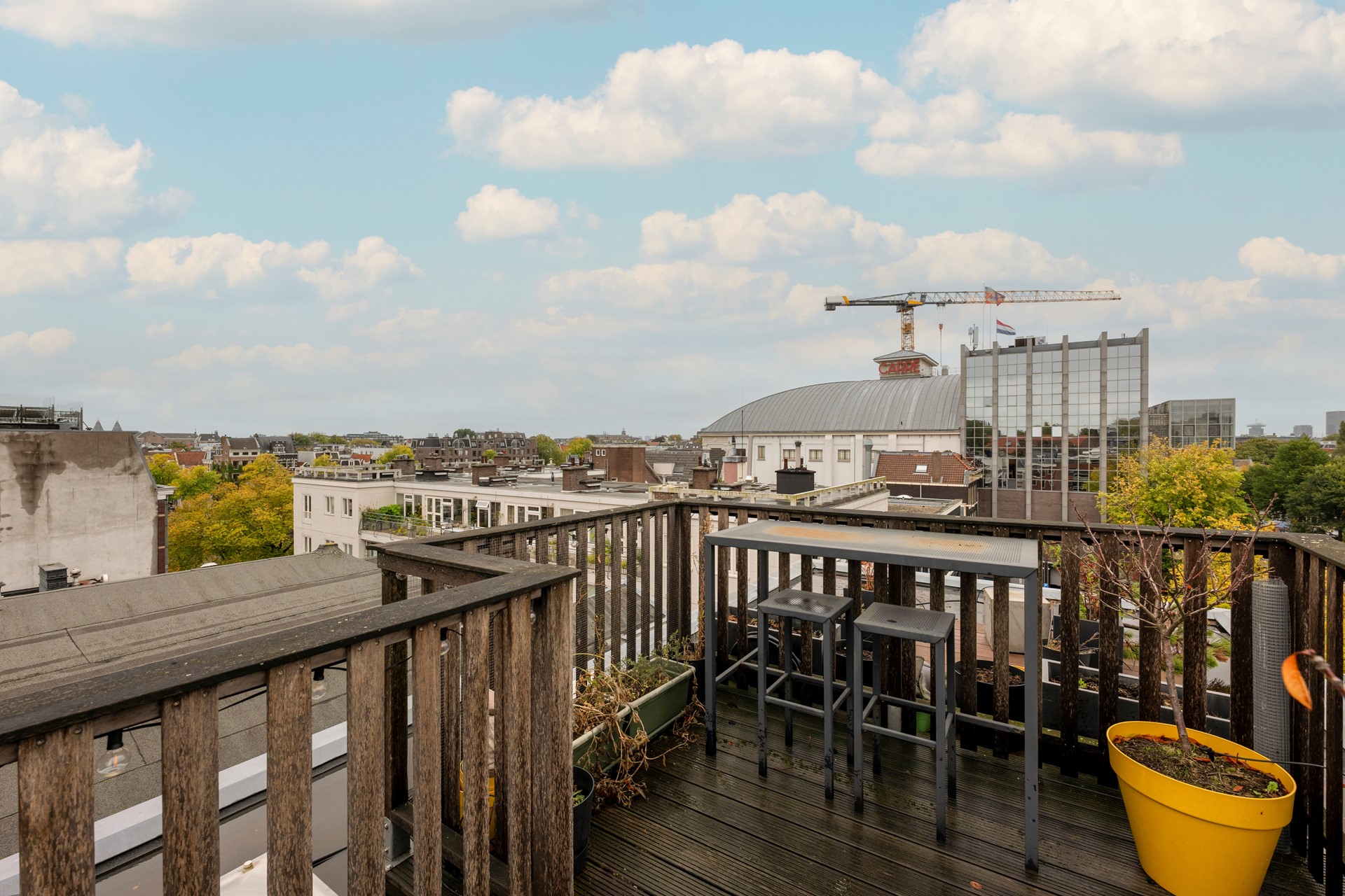 Luxurious, light and modern apartment of 130 m² with lift and large roof terrace in the centre of Amsterdam. A quiet place to live with beautiful views of the Royal Theatre Carré, the Amstel River and the lively shopping street Utrechtsestraat just a short walk away. The apartment has a well-considered layout with a spacious living room and open-plan kitchen. The kitchen opens onto a south-facing balcony. On the top floor are two generous bedrooms, a bathroom and a walk-in wardrobe. From the roof terrace you can enjoy views over the historic buildings of the city centre and the canals. The small-scale building, dating from 2005 and situated on freehold land, has a healthy homeowners’ association (VVE). Come and view bright apartment near the Amstel, we look forward to welcoming you.