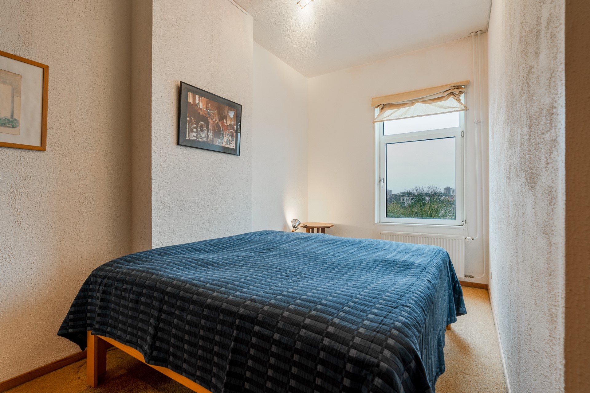 The first bedroom is located on the main living level, adjacent to the living room, and is currently used as a home office. On the fourth floor, there are two bedrooms at the front of the apartment, offering views of the towers of the Rijksmuseum, and one bedroom at the rear.