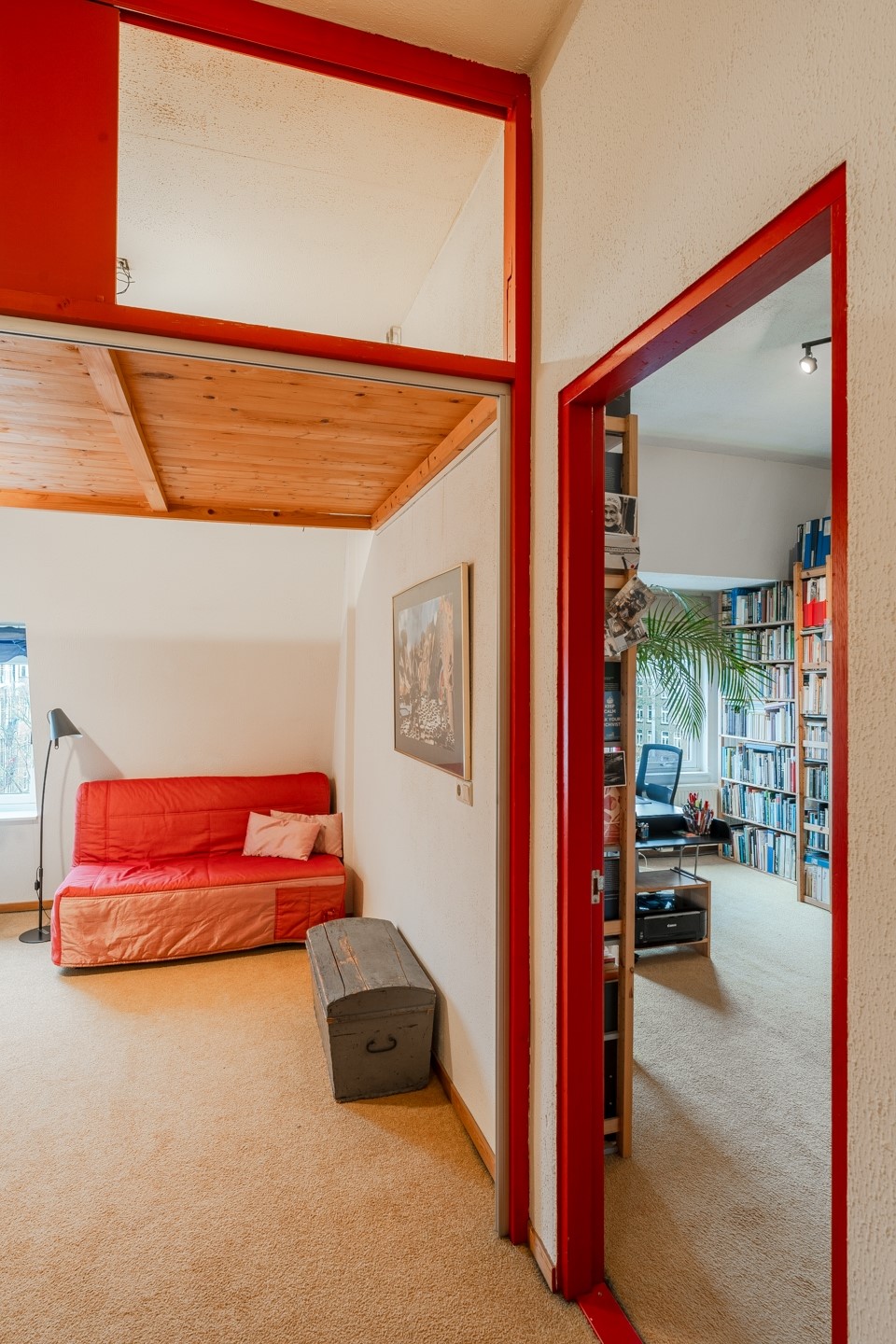 Op de woonetage is de eerste slaapkamer, naast de woonkamer. Deze wordt nu gebruikt als werkkamer. Op de vierde etage zijn twee slaapkamers aan de voorzijde, van waaruit de torens van het Rijksmuseum te zien zijn, en een slaapkamer aan de achterzijde.