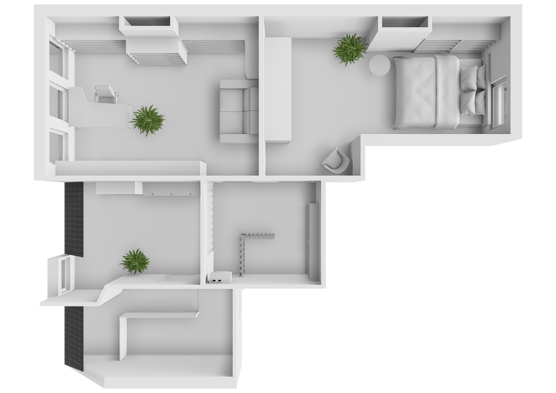 + Four bedrooms, with the option to create a second bathroom