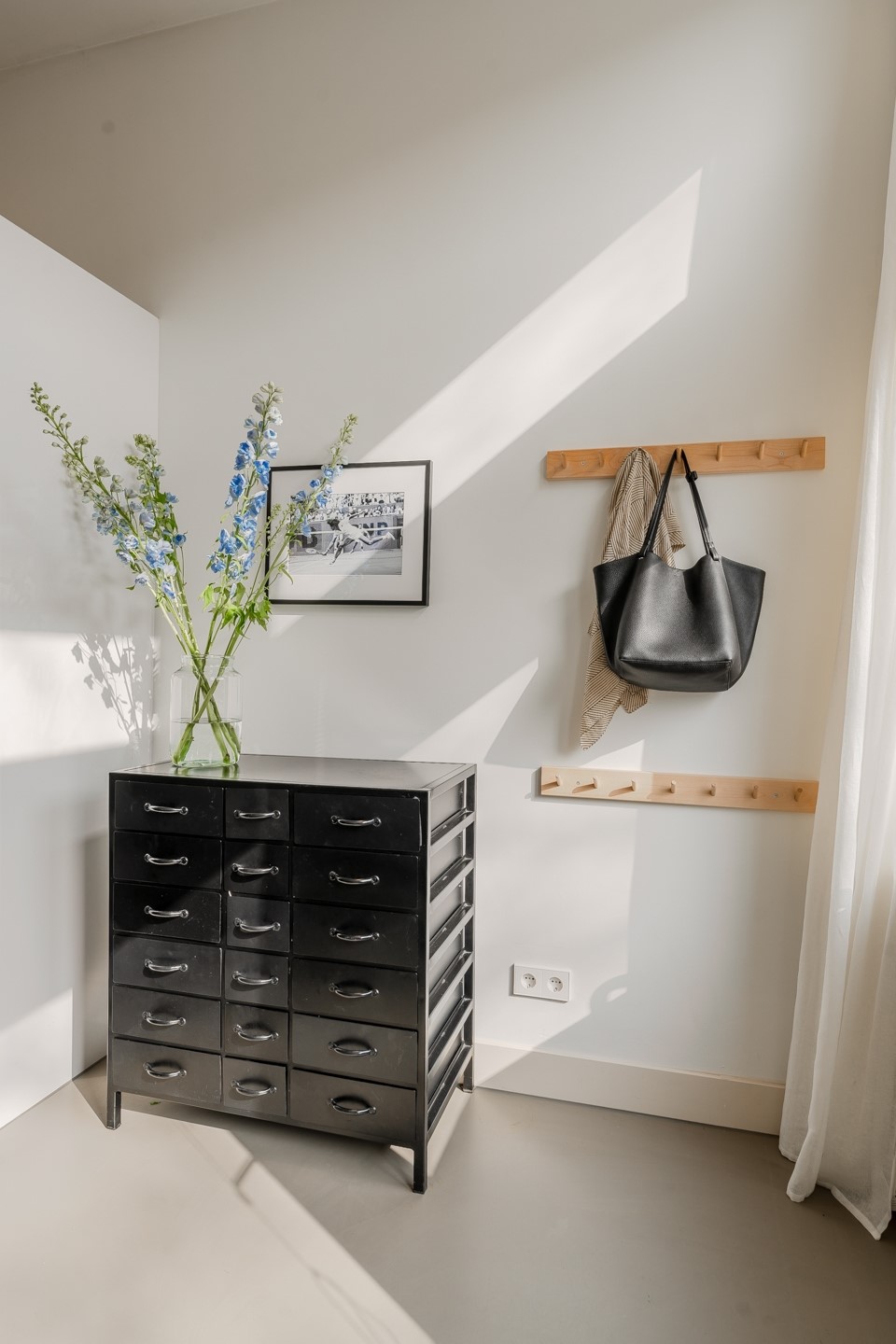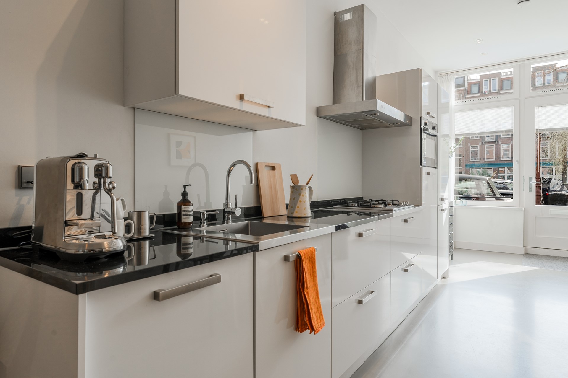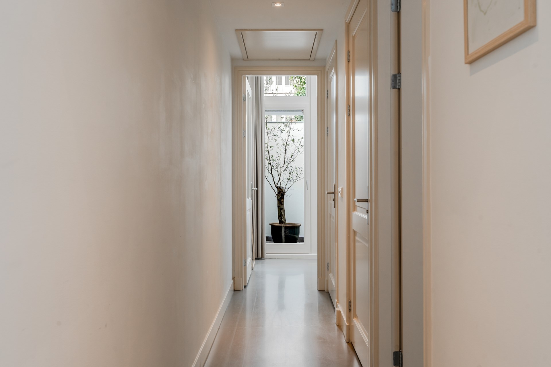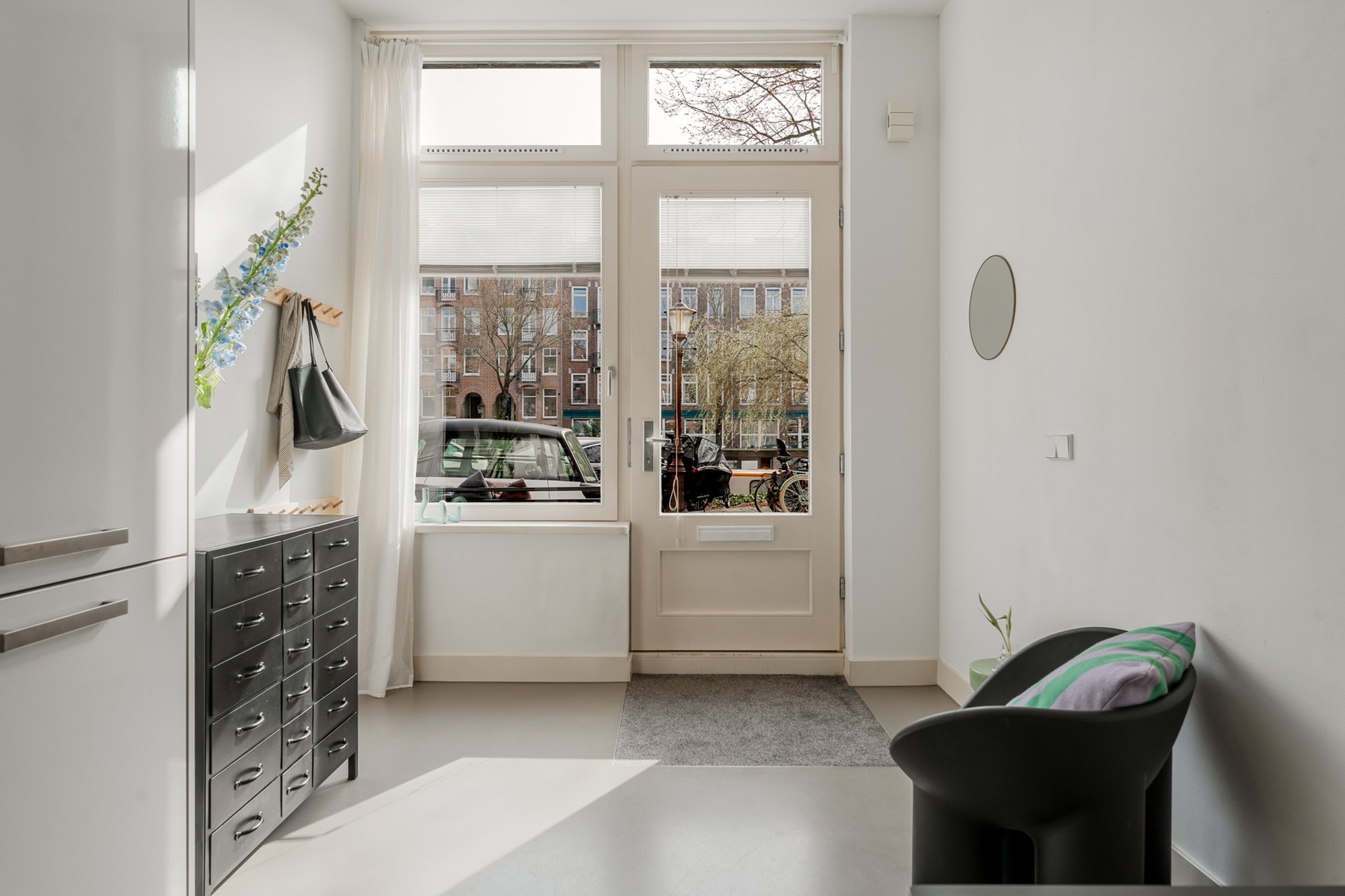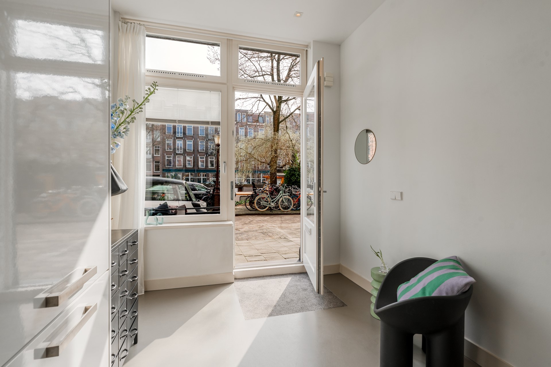 From the pavement you step directly into your own apartment. The wardrobe is located here. Upon entering you immediately experience the bright character of the home with the high ceiling of 3.20 meters.