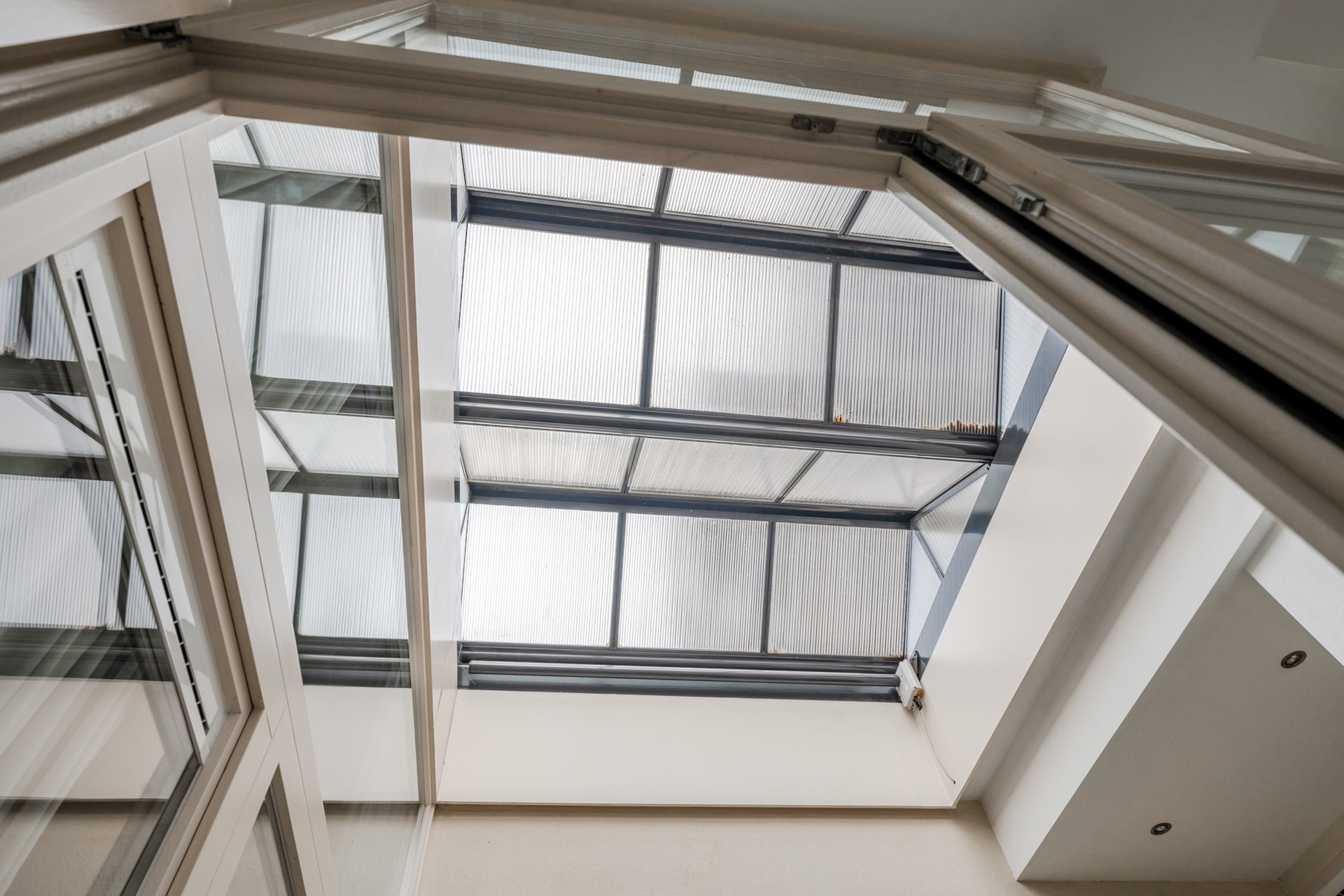 The patio has a mechanical roof that can be fully opened. Underfloor heating is also present here. The current residents use the patio as an extra play area for the children and as a study, but the space could also serve as an additional bedroom.