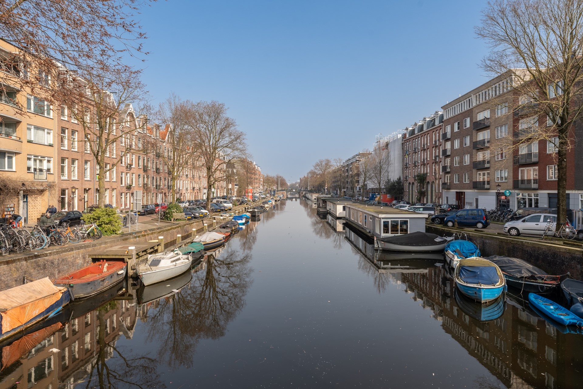 Rustig gelegen aan het water en om de hoek van de bruisende Jan Pieter Heijestraat met koffietentjes, leuke winkels en gezellige restaurants. Hier kun je terecht voor je dagelijkse boodschappen. Ook de Kinkerstraat en de populaire Ten Katemarkt zijn dichtbij. Het Vondelpark is op loopafstand en binnen tien minuten fietsen ben je bij de grachtengordel, het Museumplein of culturele voorzieningen zoals de Stadsschouwburg en Paradiso. De buurt heeft verder tal van voorzieningen zoals scholen, kinderopvang, diverse gyms en natuurlijk De Hallen.