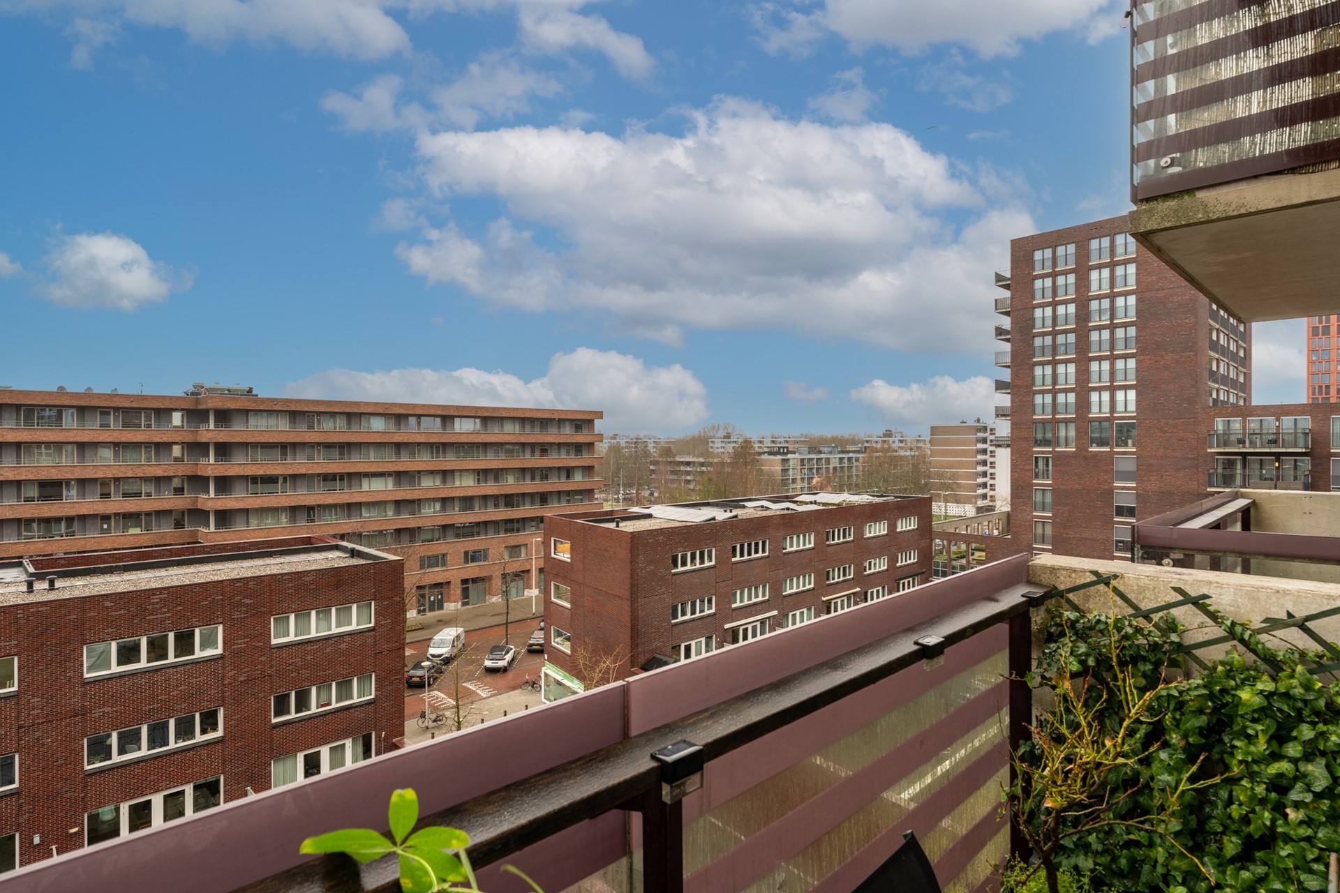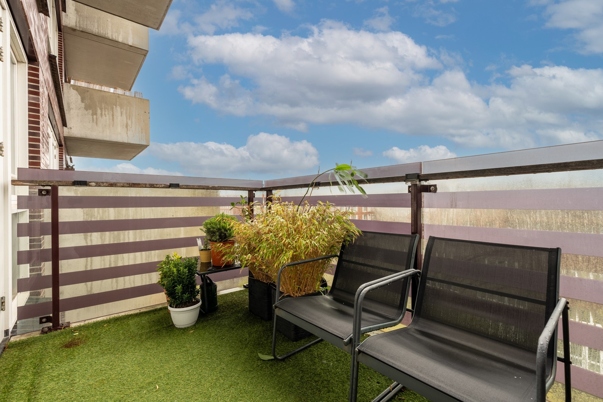 Vanuit de woonkamer stap je zo het ruime balkon op. Hier is genoeg ruimte voor een loungeplek, waar je heerlijk van de zon kunt genieten. Het balkon ligt op het zonnige westen.