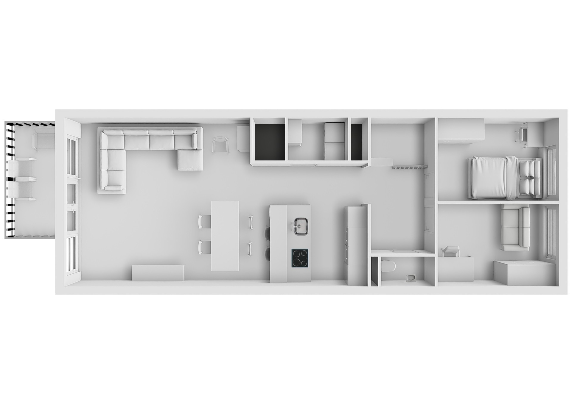 From the living room you can step directly onto the spacious balcony. There is enough space here for a lounge area where you can enjoy the sun. The balcony faces the sunny west.