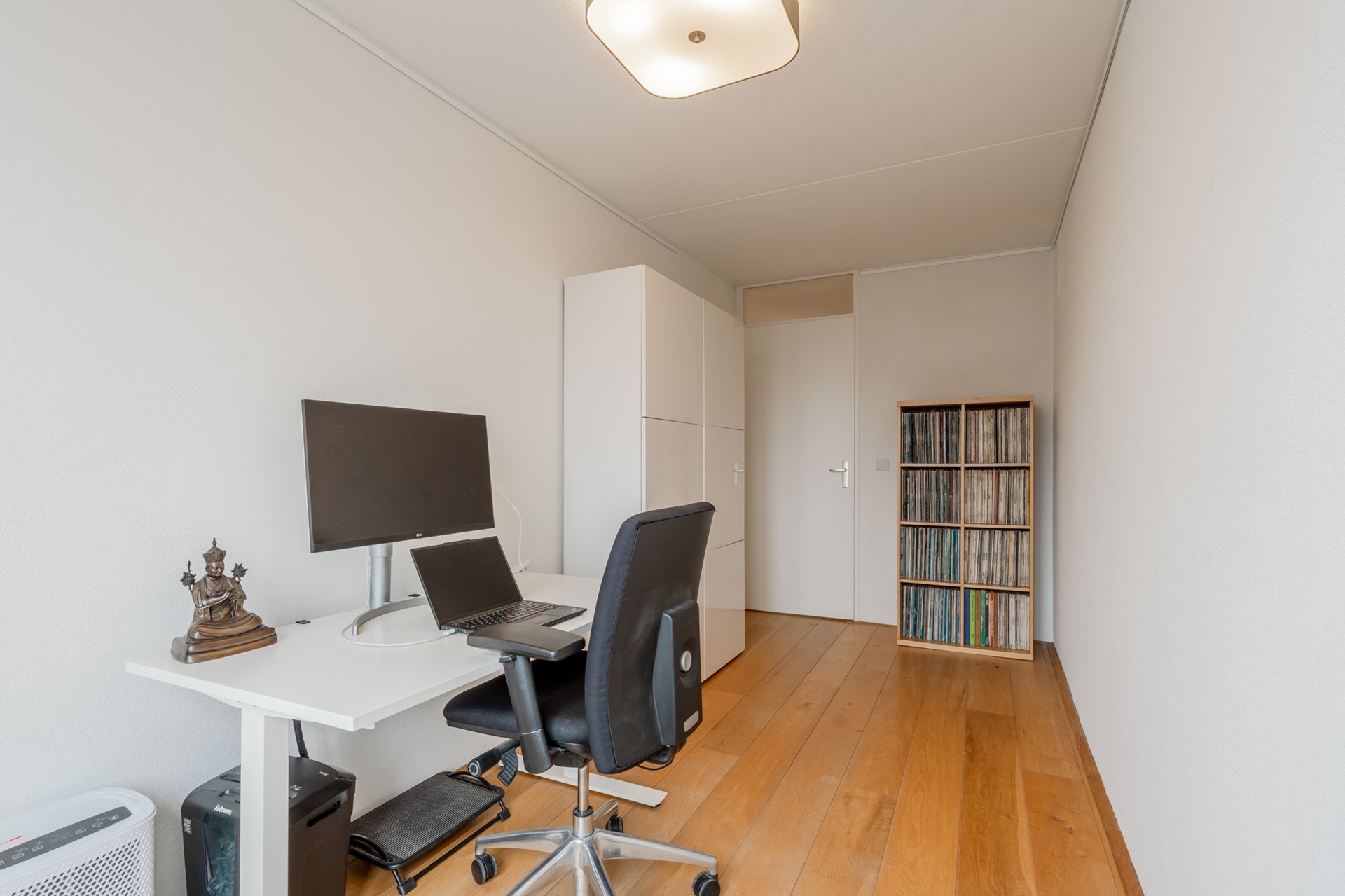 Beide slaapkamers hebben een goede maat. De hoofdslaapkamer heeft ruimte voor een tweepersoonsbed en een kastenwand. De tweede slaapkamer is nu in gebruik als werkkamer.